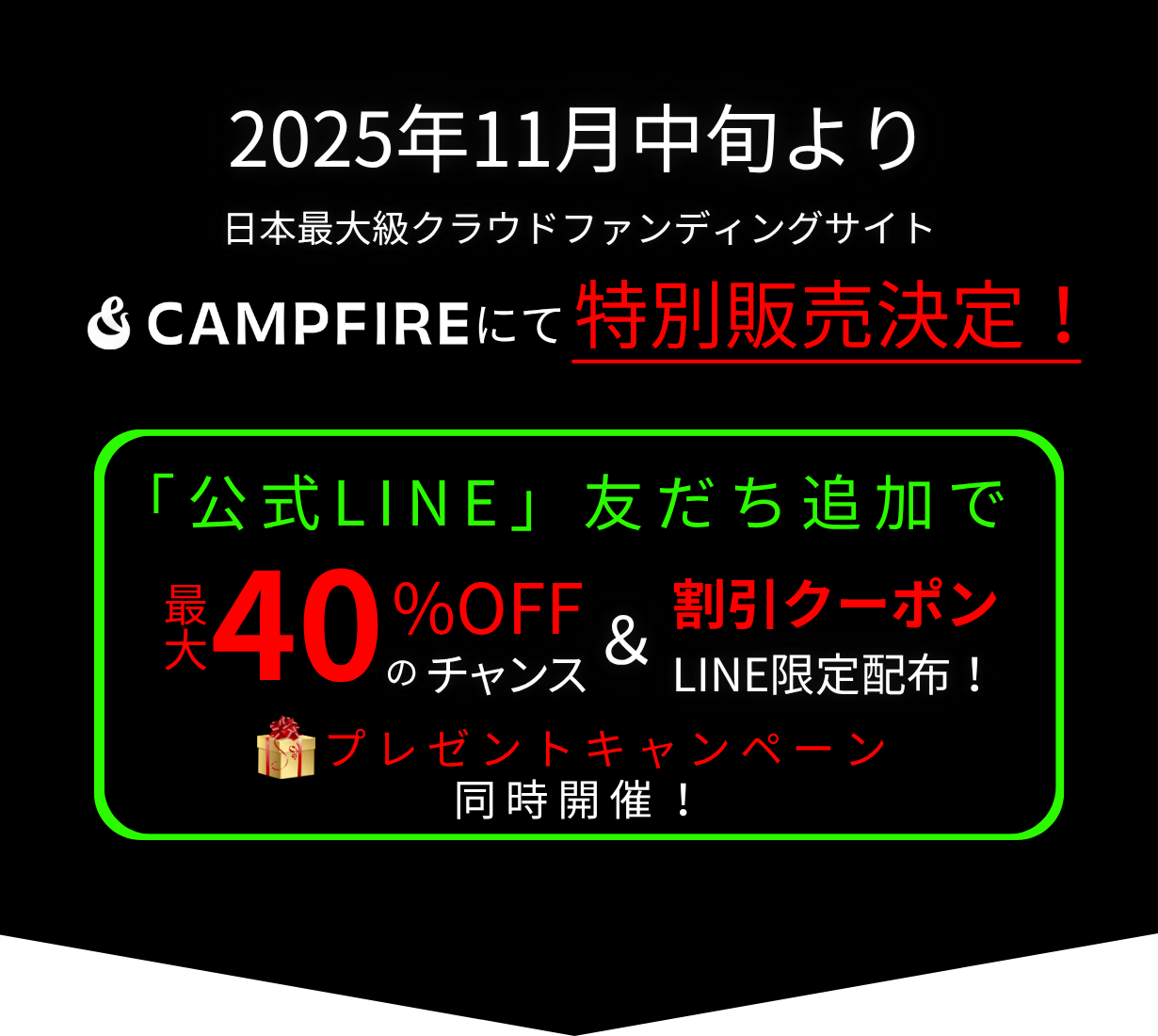 日本最大級の応援購入サイト「Makuake」にて1,000万円を超える大ヒットを記録しました。