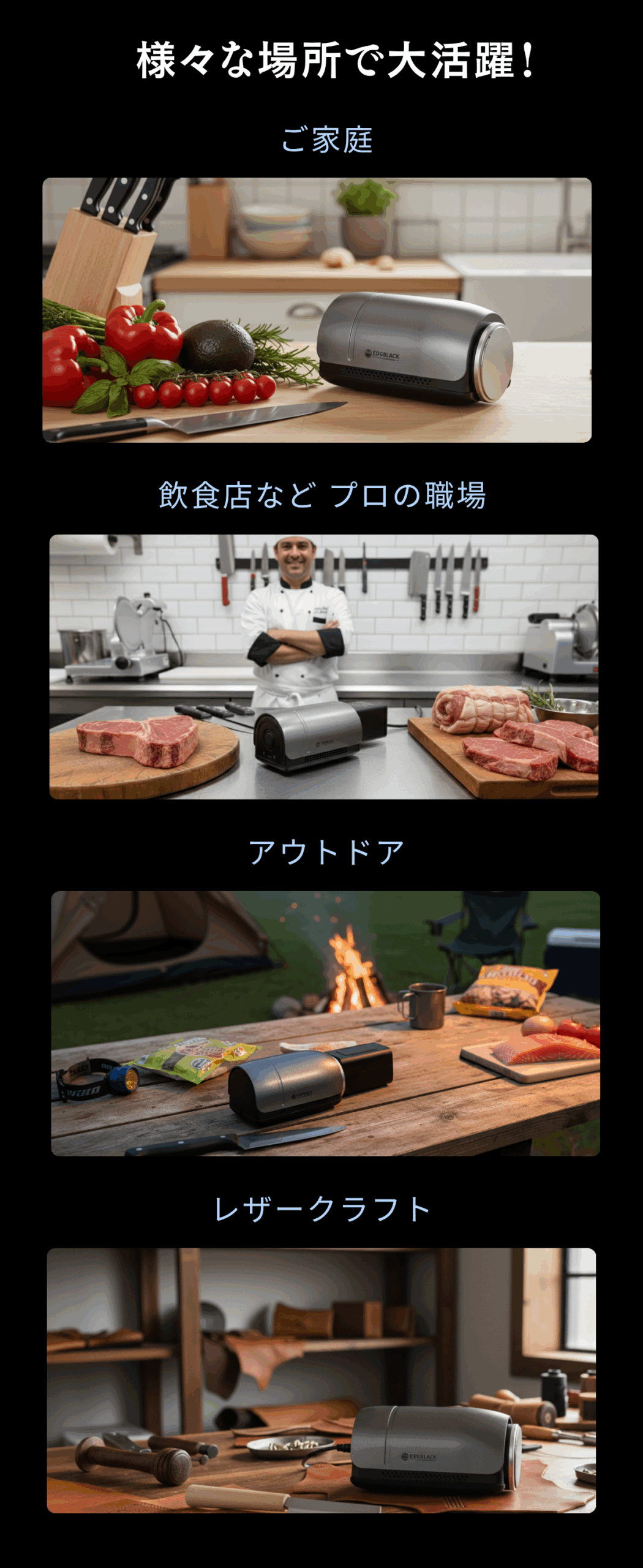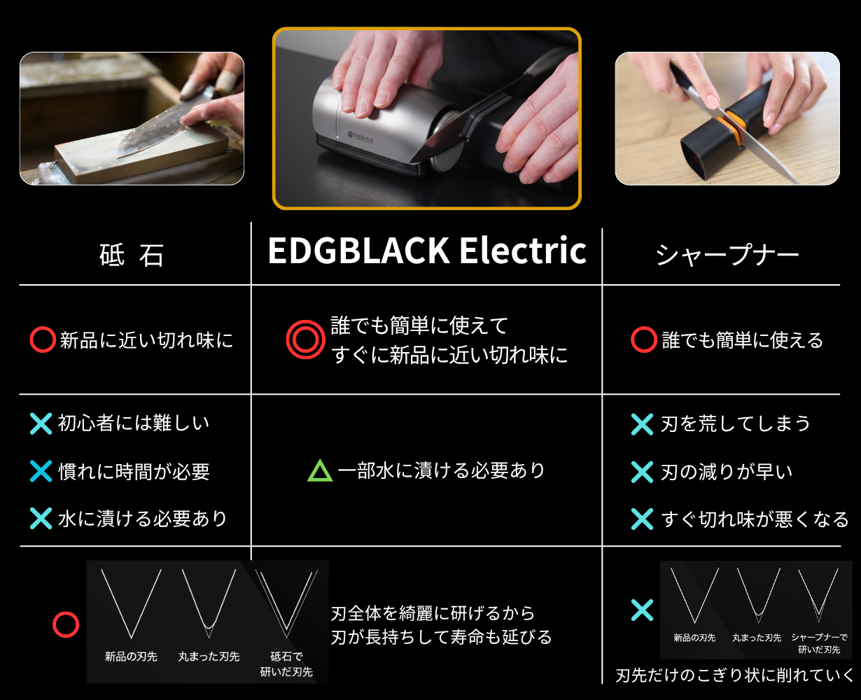 1スクロールで砥げる量が従来品から格段に増加し、圧倒的な効率化と砥ぎクオリティを実現。※包丁がすぐに減らないよう、砥ぎすぎにはご注意ください。